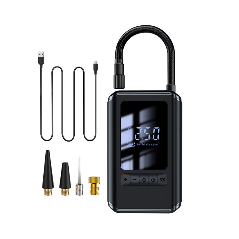 1× αεροσυμπιεστή, 4× ακροφύσια, 1× καλώδιο φόρτισης Type C, 1× σωλήνα, 1× τσάντα αποθήκευσης, 1× εγχειρίδιο οδηγιών.