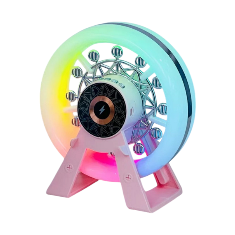 Ασύρματο ηχείο Bluetooth σε εντυπωσιακό σχεδιασμό ρόδα λούνα παρκ, με φωτισμό LED και μοντέρνο design που μπορεί να λειτουργήσει και σαν διακοσμητικό χώρου, ενώ με τον πολύχρωμο φωτισμό του δημιουργεί μία μαγική ατμόσφαιρα.