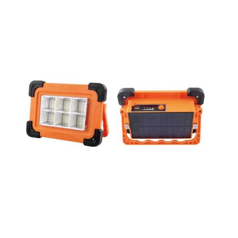 Επαναφορτιζόμενος φακός εργασίας με ενσωματωμένο ηλιακό πάνελ για έξτρα αυτονομία μπαταρίας, ισχυρό φωτισμό με ρυθμίσεις και εργονομική βάση στήριξης, ιδανικός για χρήση σε εξωτερικές δραστηριότητες, χόμπυ και εργασία.