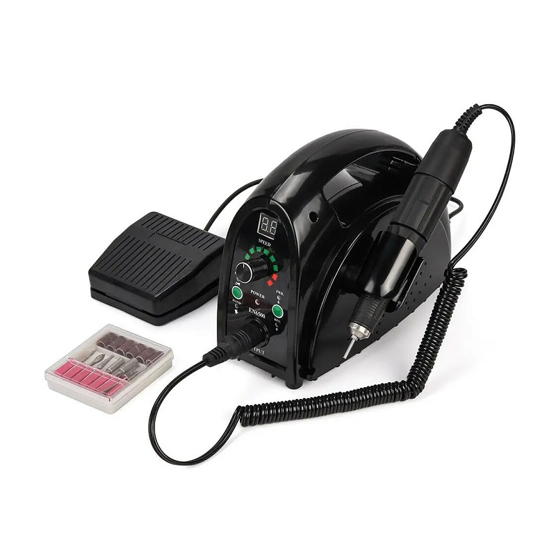 Επαγγελματικός τροχός μανικιούρ-πεντικιούρ με βάση στήριξης και πεντάλ ποδιού. Διαθέτει ρυθμιζόμενη ταχύτητα, λειτουργία μειωμένου θορύβου και δονήσεων και εργονομικό σχεδιασμό για εύκολη και άνετη χρήση.