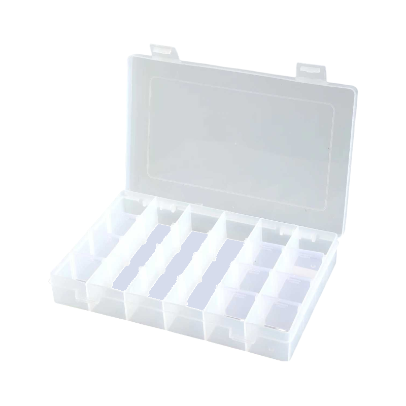 Πλαστικό κουτί-κασετίνα, ιδανικό για την αποθήκευση και μεταφορά των αξεσουάρ αλιείας σας, με πολλαπλές θήκες και διαχωριστικά.