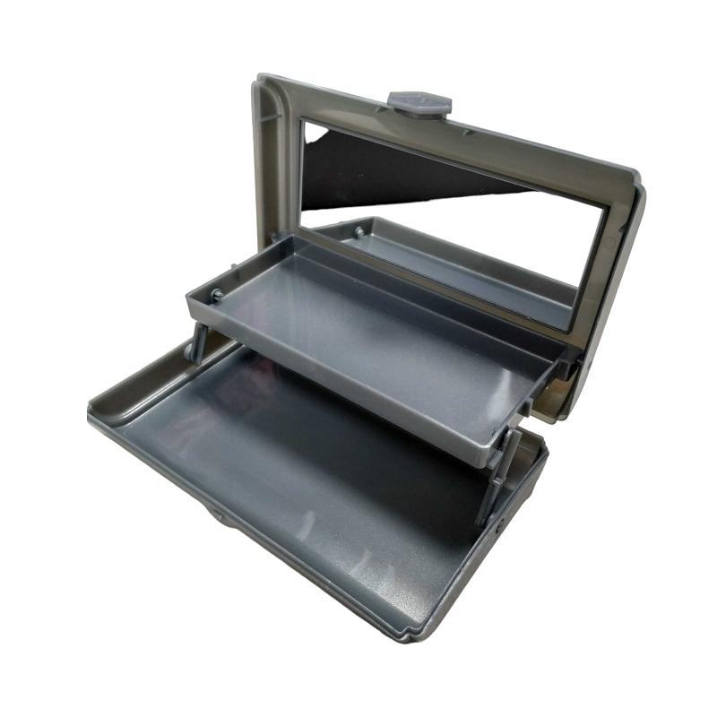 Πλαστικό κουτί οργάνωσης καλλυντικών και μπιζού με καθρέπτη και εργονομική σχεδίαση 2 επιπέδων για εξοικονόμηση χώρου.