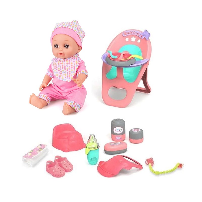 Κούκλα μωρό με καρεκλάκι φαγητού και πλήρες σετ αξεσουάρ φαγητού και φροντίδας για να φροντίσεις την κούκλα σου σαν ένα πραγματικό μωράκι!