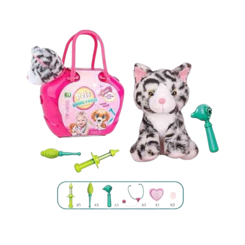 Λούτρινο ζωάκι με πλήρες σετ αξεσουάρ ιατρικής και φροντίδας και με υπέροχο τσαντάκι μεταφοράς για να το έχεις παντού μαζί σου.