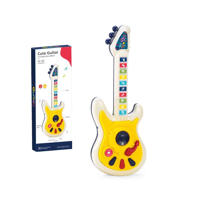 Παιδική ηλεκτρονική κιθάρα με πολλούς διαφορετικούς μουσικούς ήχους και φωτισμό, σε υπέροχο πολύχρωμο σχεδιασμό.