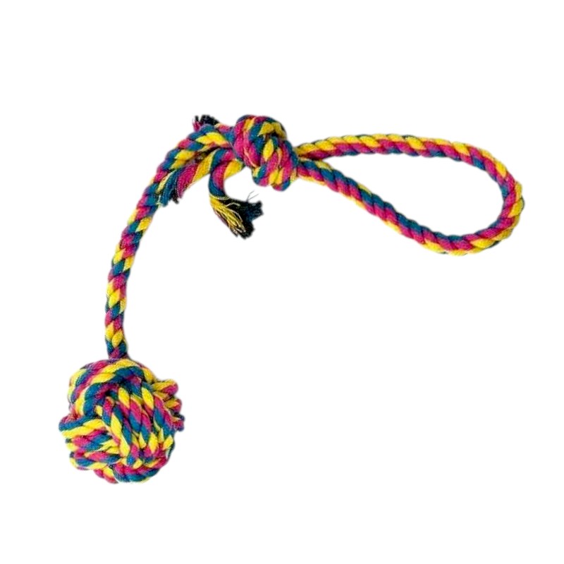 Παιχνίδι σκύλου σχοινί με μπάλα, κατασκευασμένο από ιδιαίτερα ανθεκτικό πολυεστέρα, μη τοξικό, ιδανικό για πολλαπλά είδη παιχνιδιού και άσκησης. Θα γίνει το αγαπημένο καθημερινό παιχνίδι που το σκυλί σας θα λατρέψει.