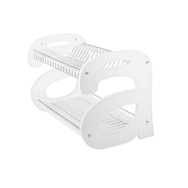 Πιατοθήκη αποστράγγισης διώροφη πλαστική με inox σκελετό, σε πρακτικό σχεδιασμό, με θήκη μαχαιροπίρουνων και κρεμάστρες.