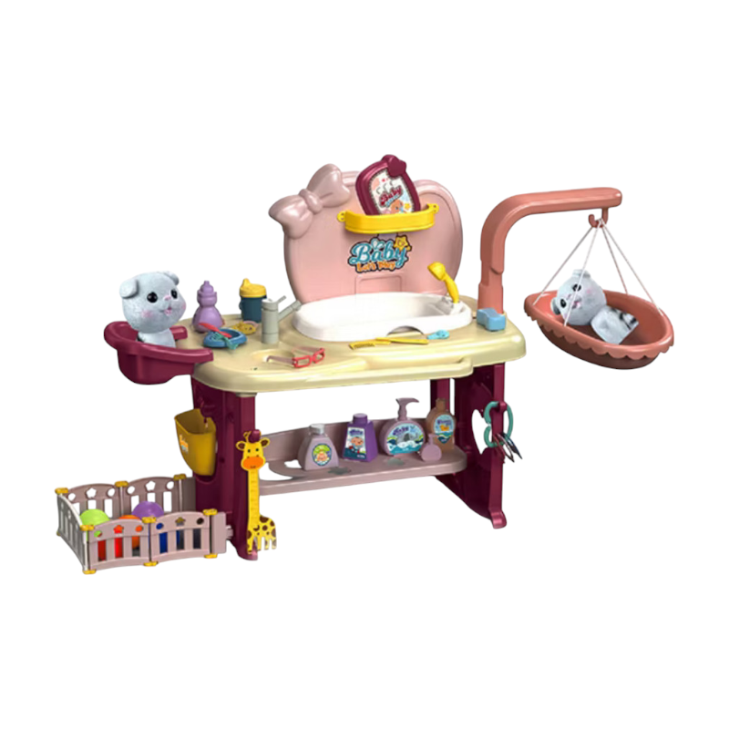 Πλήρες σετ φροντίδας κατοικιδίου με πολυλειτουργικό πάγκο και κούκλα γατάκι. Περιλαμβάνει όλα τα απαραίτητα αξεσουάρ για να φροντίσεις και να περιποιηθείς το ζωάκι σου.