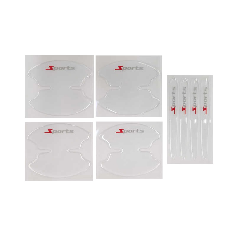 Προστατευτικό αυτοκόλλητο χερουλιού πόρτας αυτοκινήτου που προστατεύει εύκολα και αποτελεσματτικά τη περιοχή του χερουλιού από τις γρατσουνιές ενώ λειτουργεί και ως διακοσμητικό. Ισχυρό αυτοκόλλητο για σταθερή τοποθέτηση και ανθεκτικότητα στη χρήση και στο πλύσιμο. Σετ 4 τεμάχια.