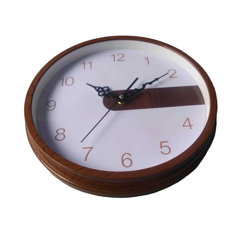 Ρολόι τοίχου σε minimal μοντέρνο σχεδιασμό με εφέ ξύλου, που μπορεί να ταιριάξει σε κάθε χώρο. Υλικό: πλαστικό, Διάμετρος: 33.5cm.