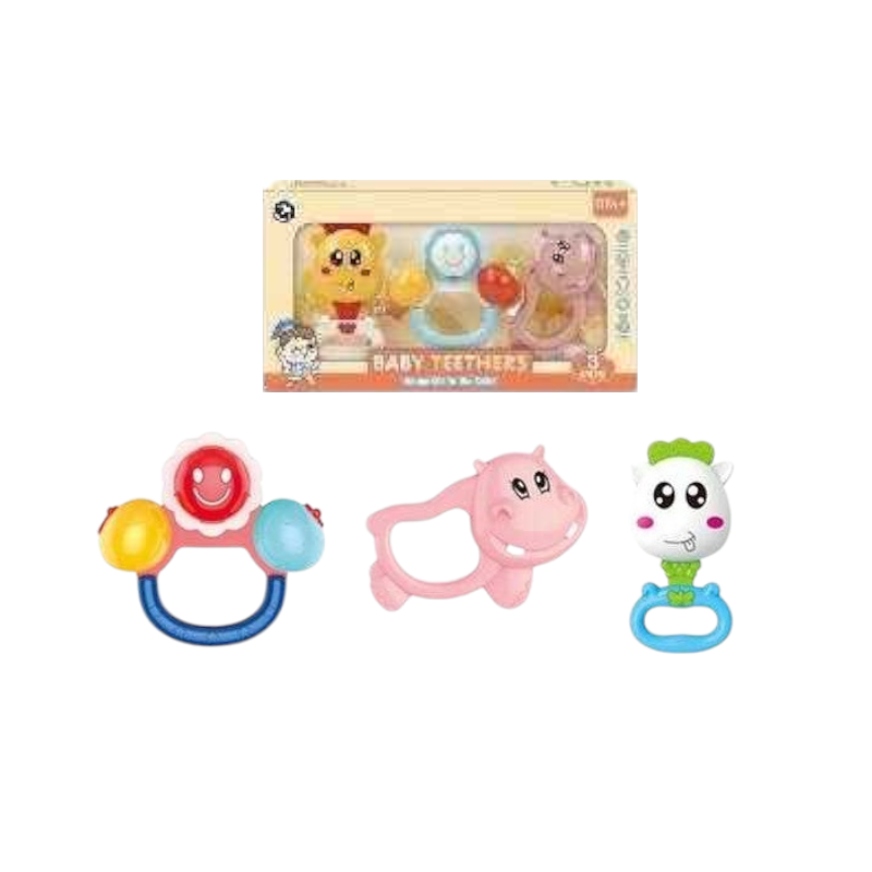 Βρεφικές κουδουνίστρες και μασητικά από ασφαλή μη τοξικά υλικά, σε υπέροχα σχέδια και χρώματα, με χειρολαβές για εύκολη χρήση.