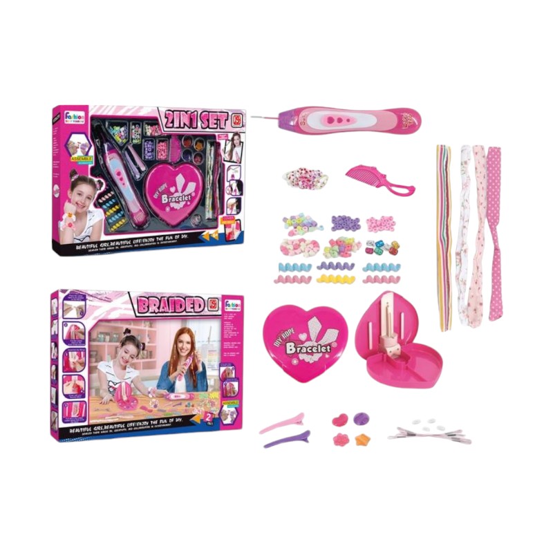 Παιδικό σετ για υπέροχα πλεξουδάκια μαλλιών με πολλαπλά σχέδια και χρώματα, εύκολα και γρήγορα χάρη στα ειδικά σύνεργα που περιλαμβάνονται.