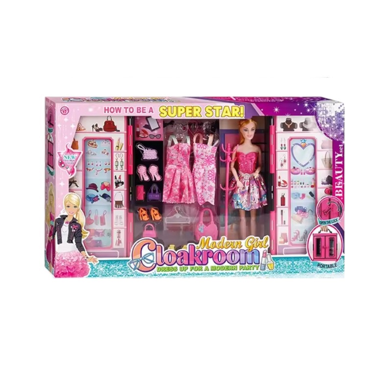 Σετ κούκλα με ντουλάπα με πολλά αξεσουάρ ομορφιάς και μακριά μαλλιά για να την περιποιηθείς όπως εσύ θα ήθελες!