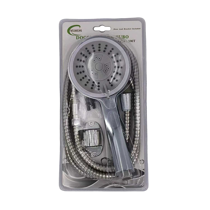 Τηλέφωνο-ακροφύσιο ντουζιέρας με 3 επιλογές πίεσης και σπιράλ σωλήνα μήκους 1.5 μέτρου, με επιτοίχια βάση και όλα τα παρελκόμενα τοποθέτησης.