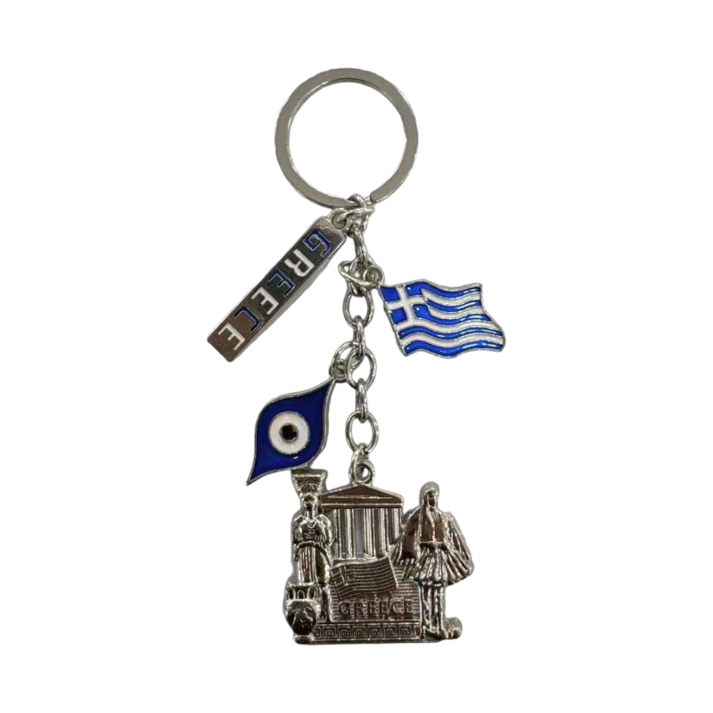 Τουριστικό μπρελόκ Souvenir Greece, κατασκευασμένο από ανοξείδωτο ατσάλι και υψηλής ποιότητας υλικά, με εντυπωσιακά ανάγλυφα σχέδια που αντιπροσωπεύουν την Ελλάδα. Πακέτο 12 τεμαχίων. Μήκος: περ. 12cm.