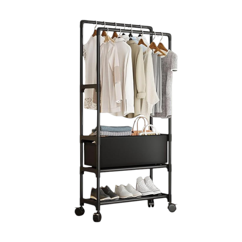 Τροχήλατη κρεμάστρα δαπέδου με ράφια παπουτσιών - YX9108-3B - 522800