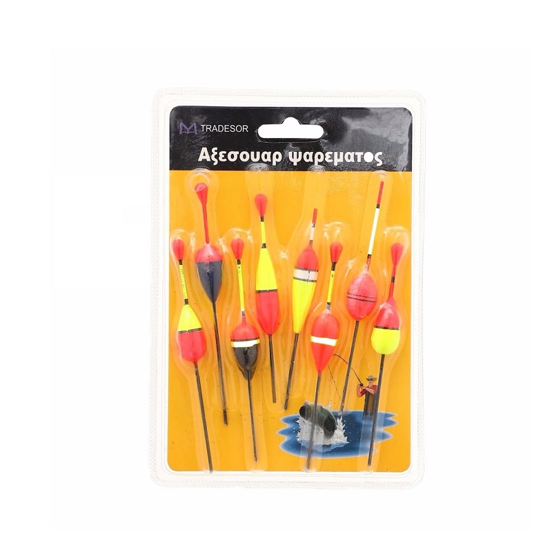 Σετ φελλοί ψαρέματος σε διάφορα μεγέθη και σχήματα.