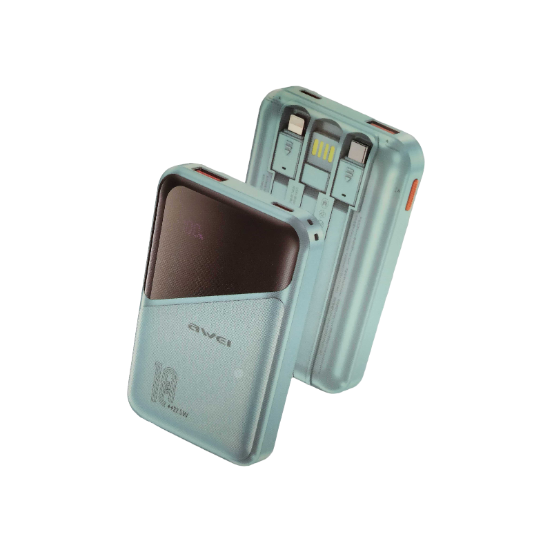 Powerbank Awei μεγάλης χωρητικότητας 10.000mah, με λειτουργία γρήγορης φόρτισης, σε πρακτικό μέγεθος για εύκολη μεταφορά παντού.