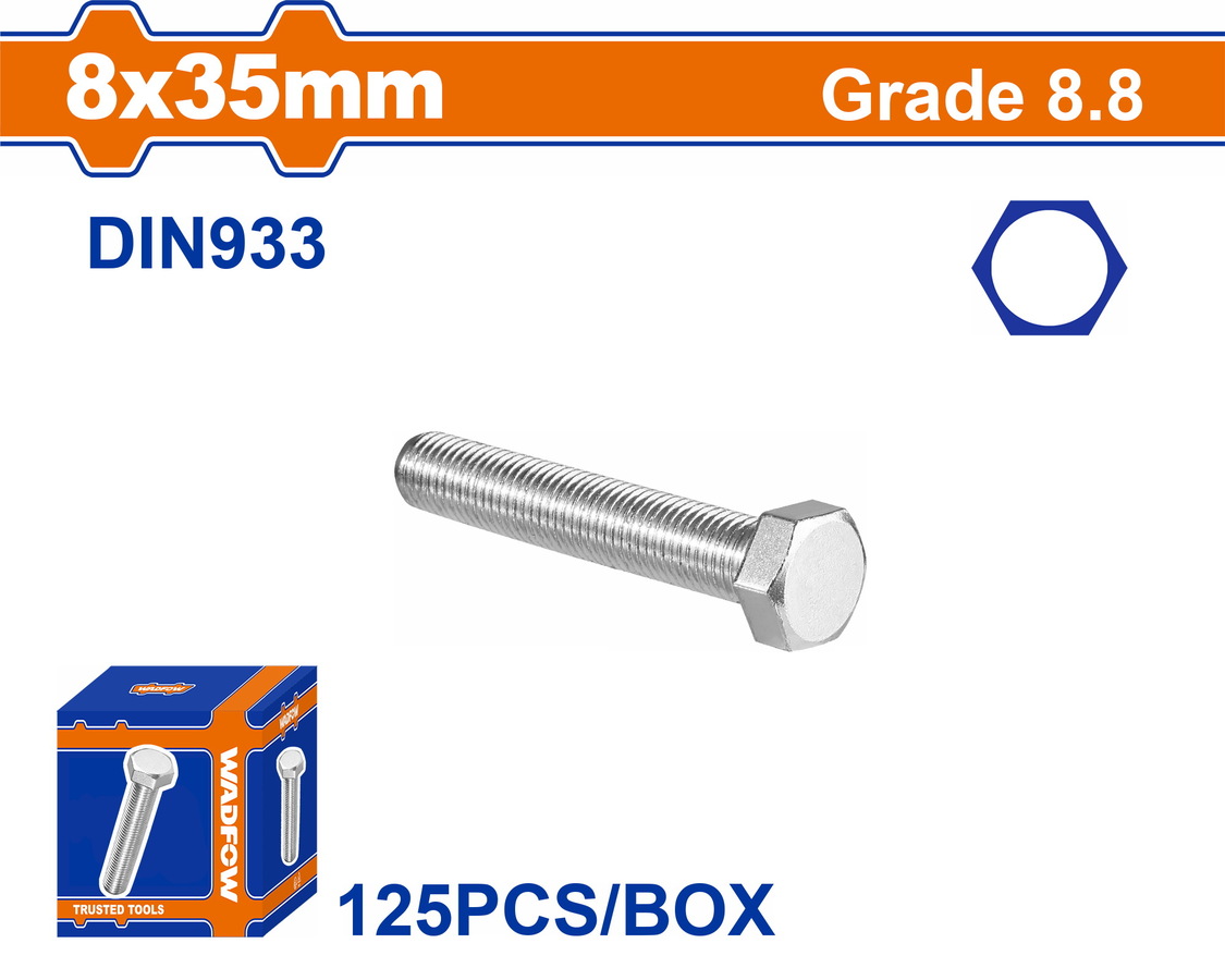 WADFOW ΒΙΔΑ ΕΞΑΓΩΝΗ ΓΑΛΒ. 8.8 DIN933 8X35 125TEM (WXSP527A) ποσότητα