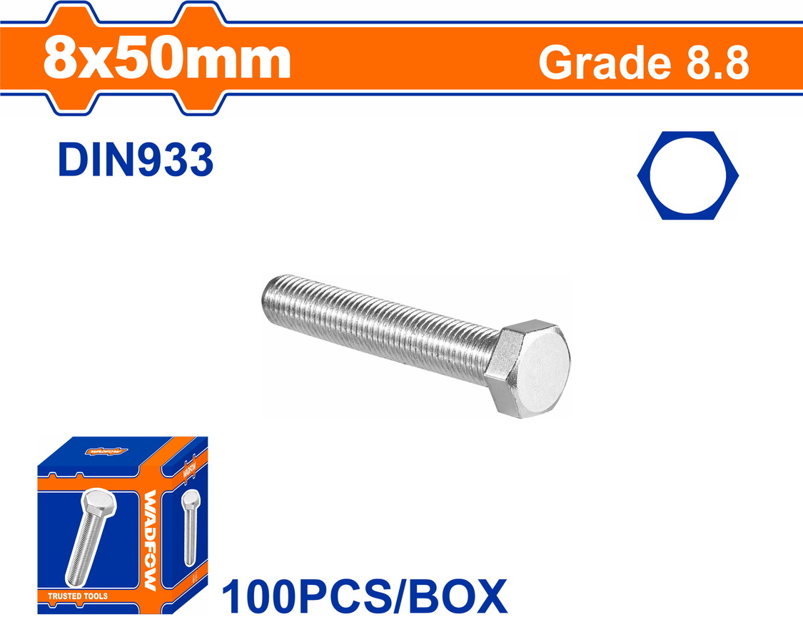 WADFOW ΒΙΔΑ ΕΞΑΓΩΝΗ ΓΑΛΒ. 8.8 DIN933 8X50 100TEM (WXSP52AA) ποσότητα