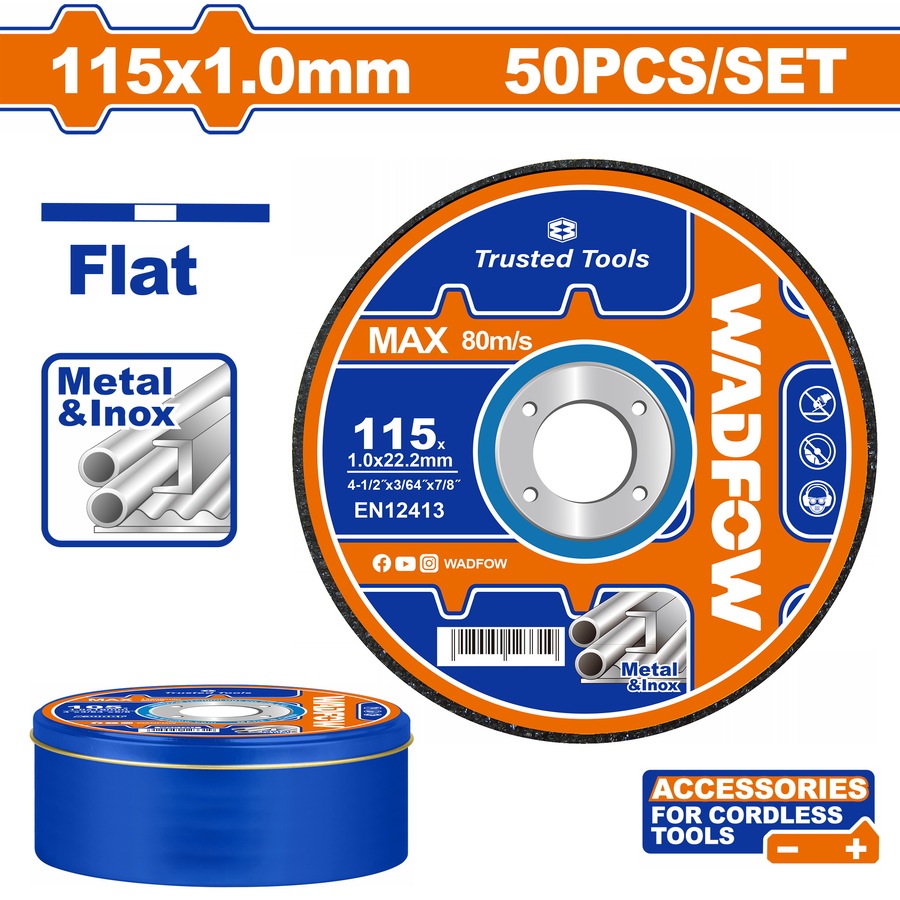 WADFOW ΔΙΣΚΟΣ ΚΟΠΗΣ ΙΝΟΧ/ΜΕΤΑΛΛΟΥ ΙΣΙΟΣ 115 Χ 1mm 50ΤΕΜ ΣΕ ΜΕΤΑΛΛΙΚΟ ΚΟΥΤΑΚΙ (WAC3L45) ποσότητα