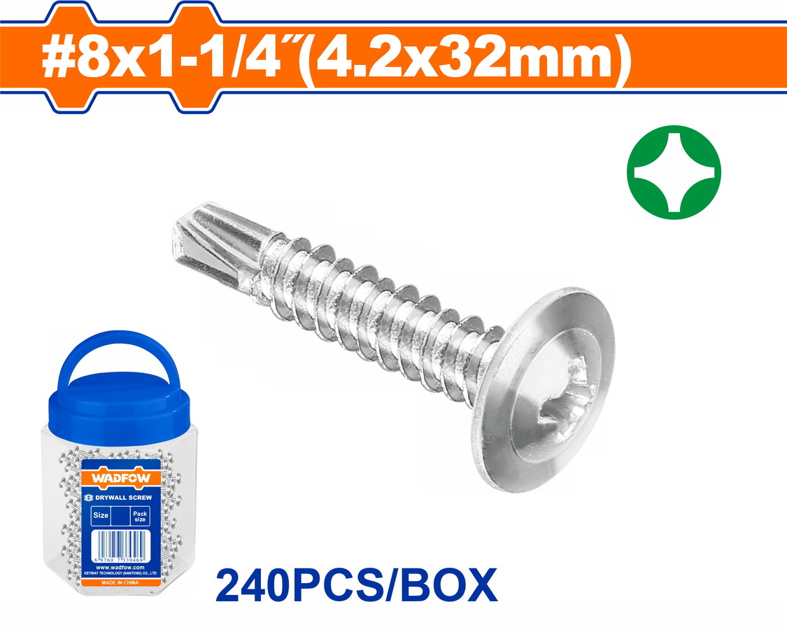 WADFOW ΛΑΜΑΡΙΝΟΒΙΔΑ ΑΥΤΟΔ/ΤΗ ΓΑΛΒ.WAFFER 8 X 1-1/4" / 4.2 Χ 32mm 240TEM ΣΕ ΠΛΑΣΤΙΚΟ ΒΑΖΑΚΙ (WXS3T14) ποσότητα