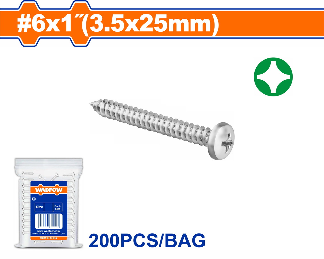 WADFOW ΛΑΜΑΡΙΝΟΒΙΔΑ ΨΩΜΑΚΙ ΓΑΛΒ. ΣΤΑΥΡΟΥ 6 Χ 1" / 3.5 Χ 25mm 200TEM (WXSA914) ποσότητα