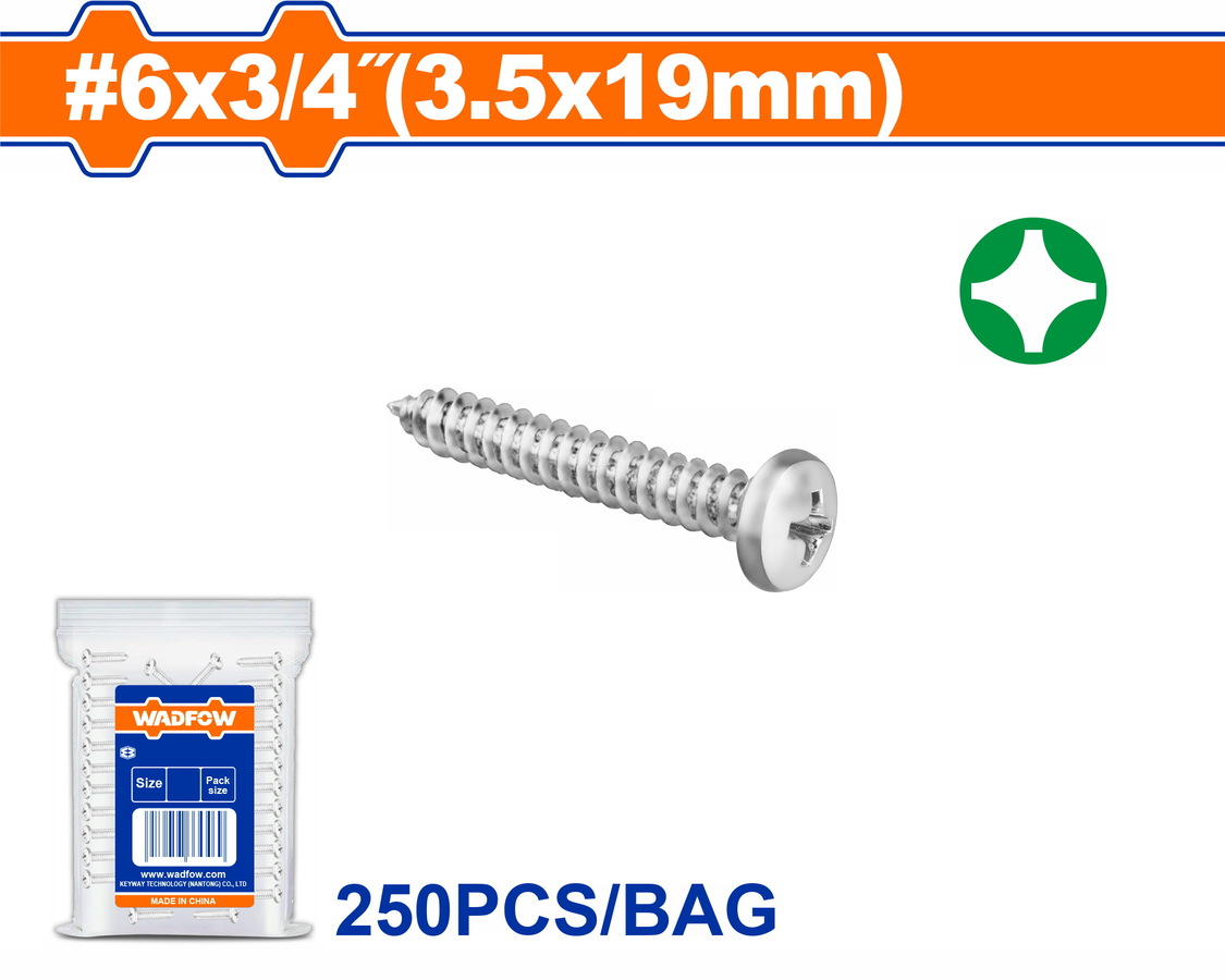 WADFOW ΛΑΜΑΡΙΝΟΒΙΔΑ ΨΩΜΑΚΙ ΓΑΛΒ. ΣΤΑΥΡΟΥ 6 Χ 3/4" / 3.5 Χ 19mm 250TEM (WXSA913) ποσότητα
