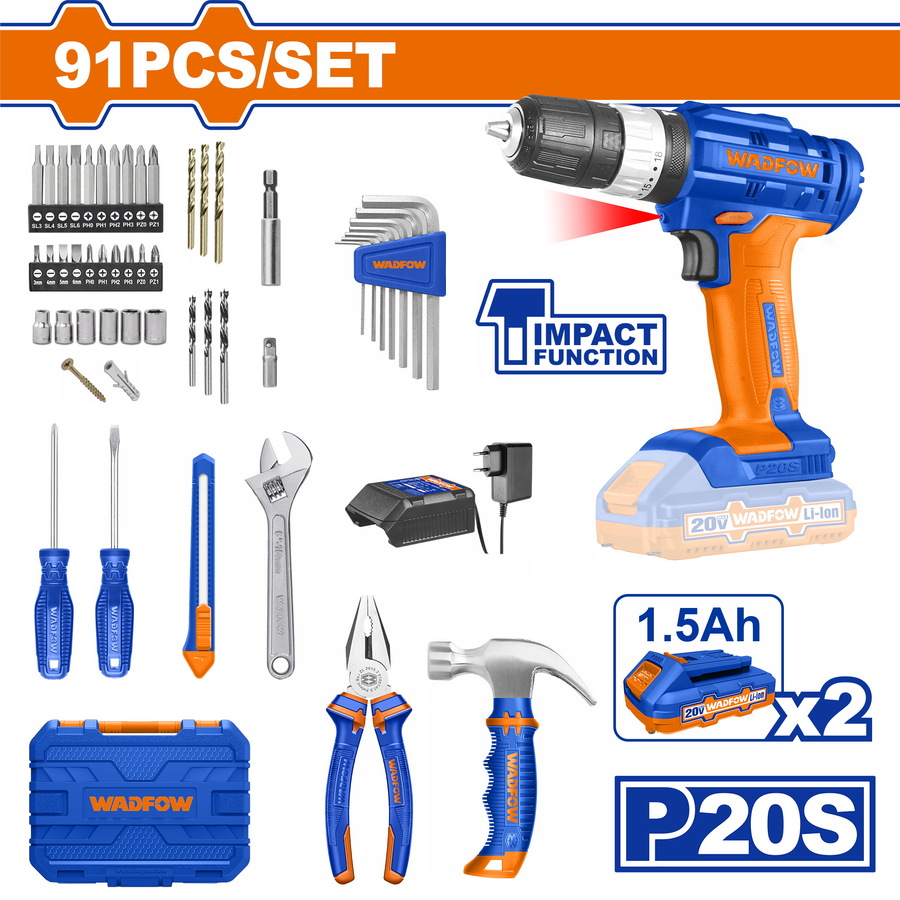 WADFOW ΣΕΤ ΔΡΑΠ/ΒΙΔΟ ΚΡΟΥΣΤΙΚΟ ΜΠΑΤ. Li-ion 20V / 1.5Ah / 35Nm / 2 ΜΠΑΤ 91ΤΕΜ (WDT1B90)
